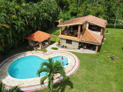 ¿Por qué Cacimbas de la Montaña? Porque en el complejo abundan los arrollos subterráneos y porque está situadomirando hacia la Cordillera Central, muy cerca de las montañas El Faro, Guaiguí, El Plátano y Los Mogotes.